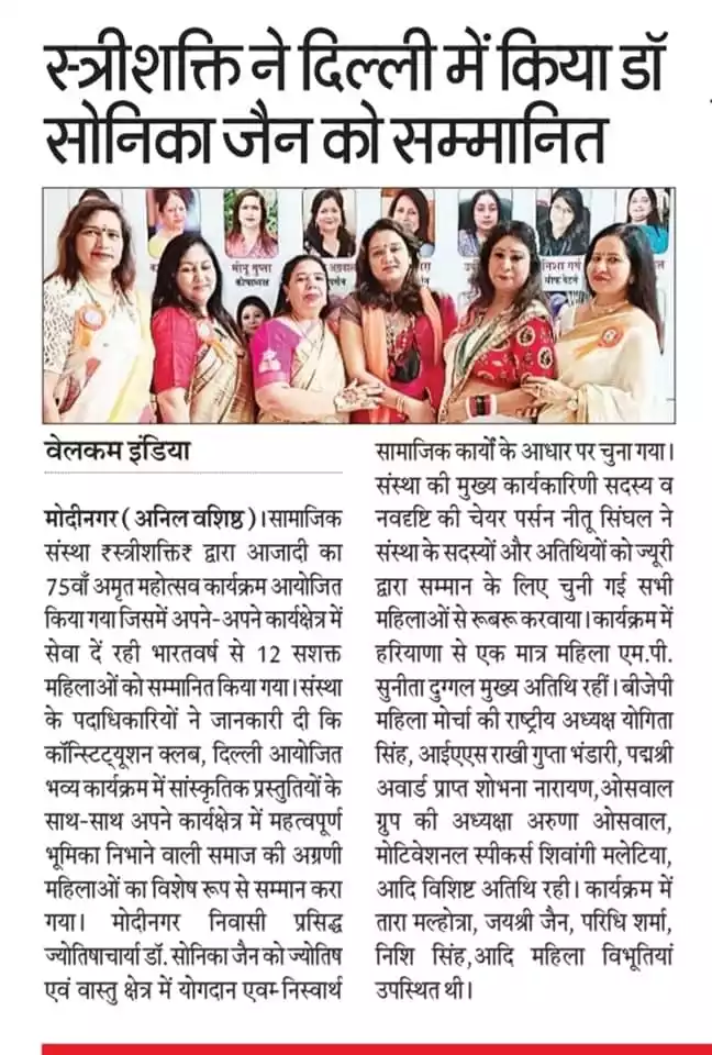 Dr. Sonika Jain is renowned astrologer & Vaastu Expert. She is Chairperson of Jyotish Gyanpeeth. Her vast client base includes industrialists, builders, politicians, professionals, celebrities and others in India and abroad. Beside Astrology and vaastu she is also expert of numerology, Geopathic Stress removal, Tarot Card reading, Runes reading.