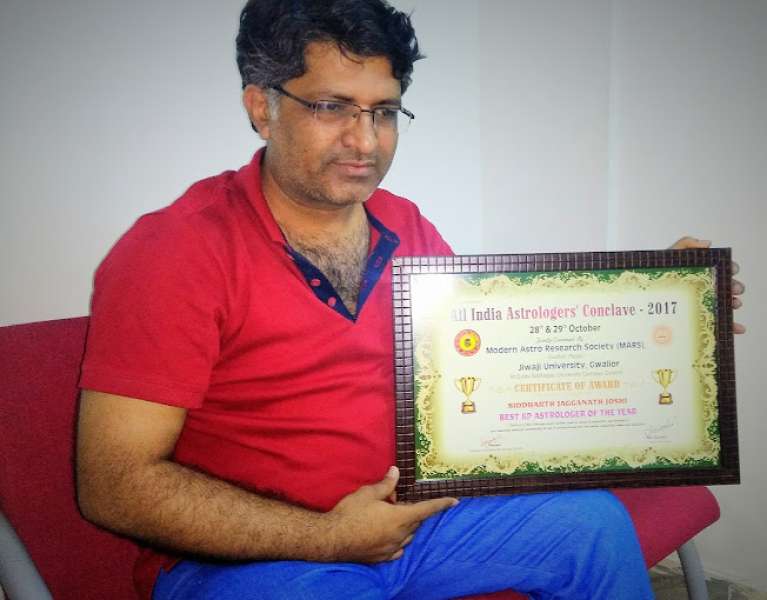 "Astrologer Sidharth Jagannath Joshi is One of the best astrologer having good practice in India. He mastered in traditional Parashar paddathi, Lal Kitab, Krishnamurti Paddhati and Vastu Shastra. With his accurate horoscope prediction and effective remedies, he got attention from Indians who are spread all over the globe. His premier customer is from USA, Australia, England, Europe, Middle East, China as well as all over India."